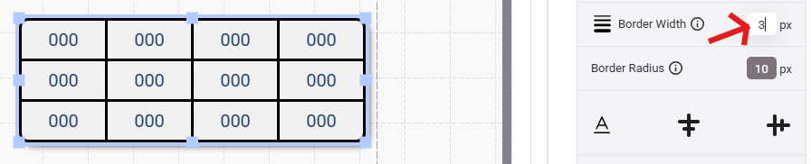 - Enter a border width in the text box to adjust the line weight of the border/grid within your table.