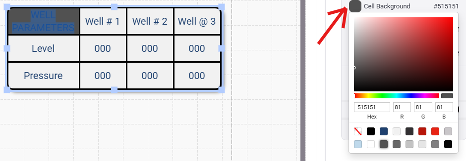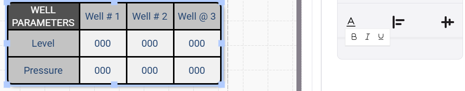 - Clicking on "Select Object" will bring up a list of available tags from your project that can be linked to the cell within your table. This will populate the cell with information from that specific tag. In this example we are going to be selecting from the available Well Levels and Well Pressures to fill out the rest of our table.