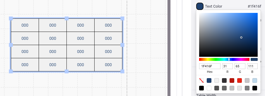 - Next you can choose a default Text color for the table. Double-click a cell to change the text of individual cells.