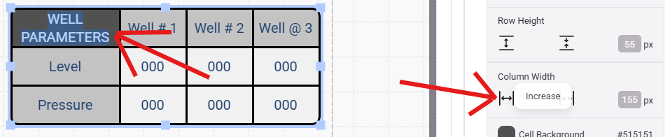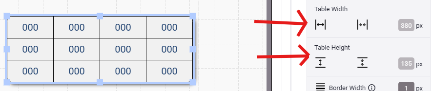 - You can also adjust the Table Width and Table Height for the entire table or individual rows/columns (Double-click on a cell within the row or column you wish to adjust)