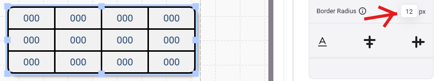 - You can change how round the corners of your table are by choosing a border radius between 1-12, with one being the most square and 12 being the most round.