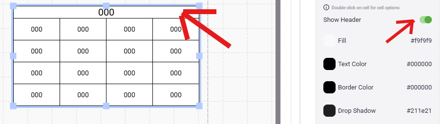 - If you would like a header for your table, select the Header Toggle. This can be useful to add a title to the table, i.e. "Communication" or "Flow Totals"