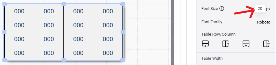 - Next, select a default font size for the table. Once again, you can double-click any cell to change the font size for only that cell.