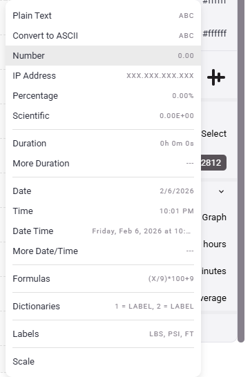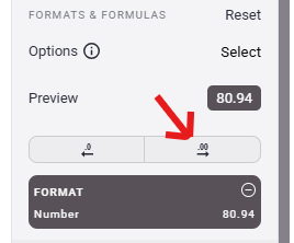 - First, let's look at the "Number" format. This allows us to take a number that potentially has a large number of decimal places and shorten it to the amount of accuracy that works for the data being used. Once selected, you can use the left and right arrow buttons to shorten or extend the number of decimal points being carried.