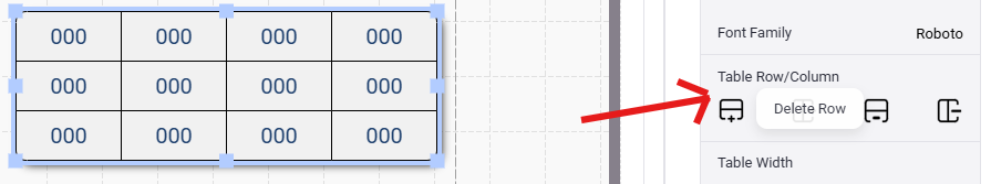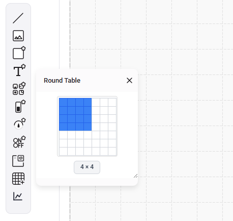 - To start, Select your initial table size from the toolbar on the left-hand side bar. This can be changed later by using the add and remove row/column buttons on the right-hand side toolbar when the table is selected.