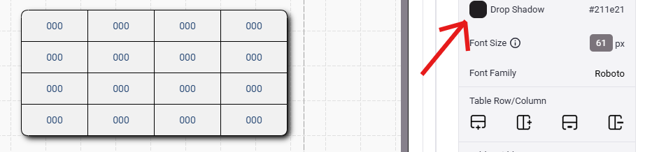 - Select a drop shadow color. This will help your table stand out on the page. If you wish to turn off the drop shadow, set the color to transparent in the color selector.