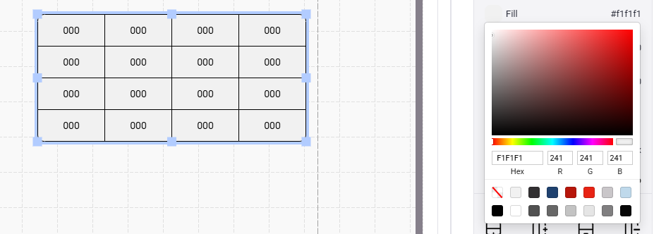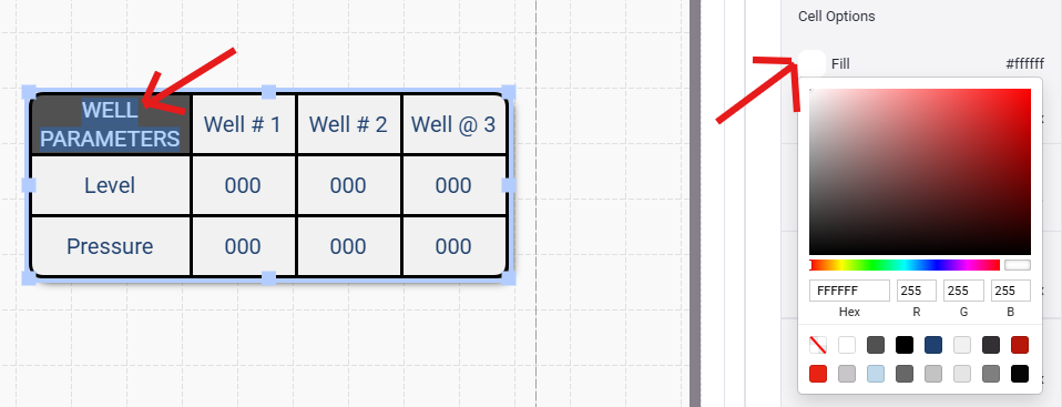 - Select the background Fill color for your table. Individual cells or entire rows and columns can also be changed by double clicking on the cell you wish to change.