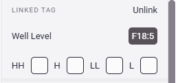 - The first set of options available after linking a tag are the 4 check-boxes for presenting the tag as a threshold value. This lets the end user view and manipulate the threshold (HH,H,L,LL) rather than the sensors actual value. This is useful when creating a table for Alert/Notification setpoints. This is beyond the scope of this article and we will have a more detailed knowledgebase article on this in the future.