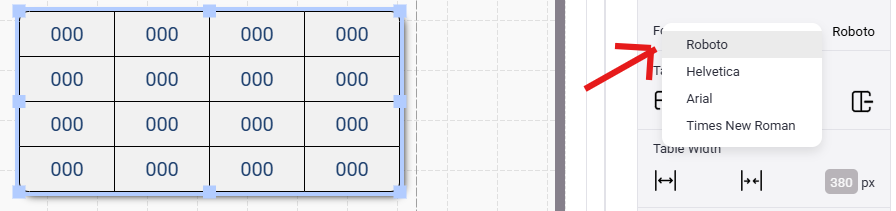 - Now choose a Font Family for the table.