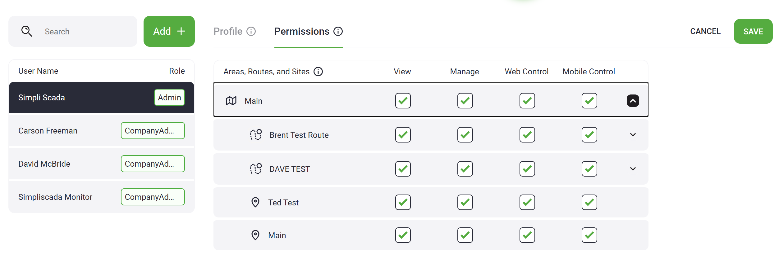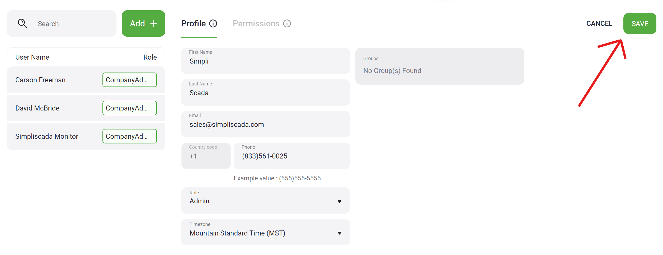User management is an important part of maintaining your Simpliscada system. Not only does this provide a way for users to login to the system, it also allows the creation of user permissions and it is integral to the notification system as well.