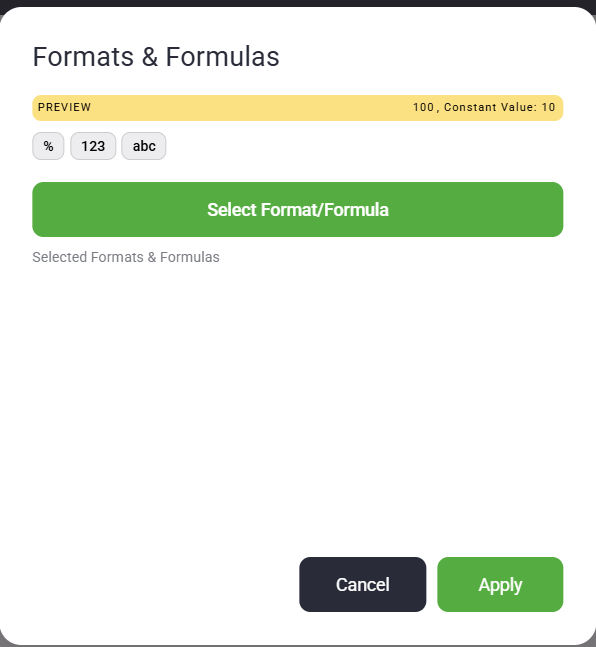 Click “Select Format/Formula” to access the following tools: