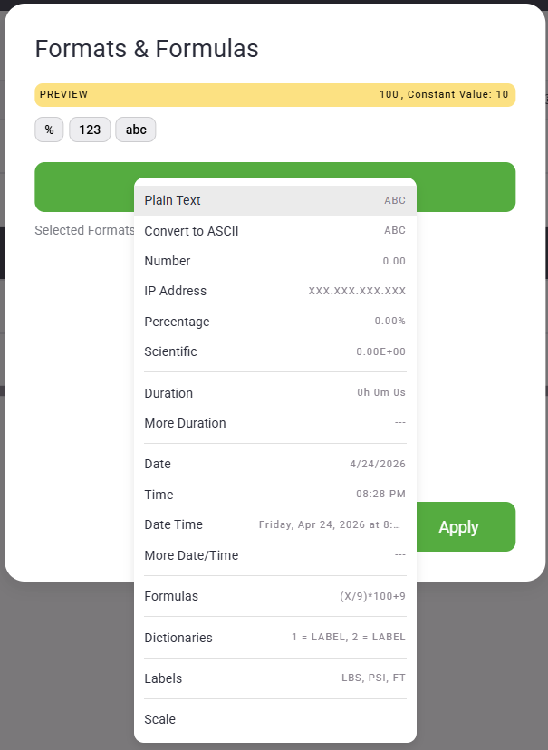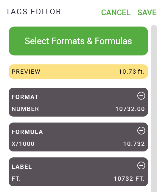 Formats & Formulas provide a flexible way to control how tag data is displayed throughout your project.