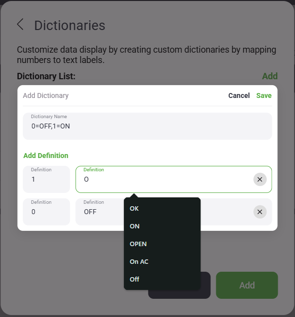 Click Add Definition for each value