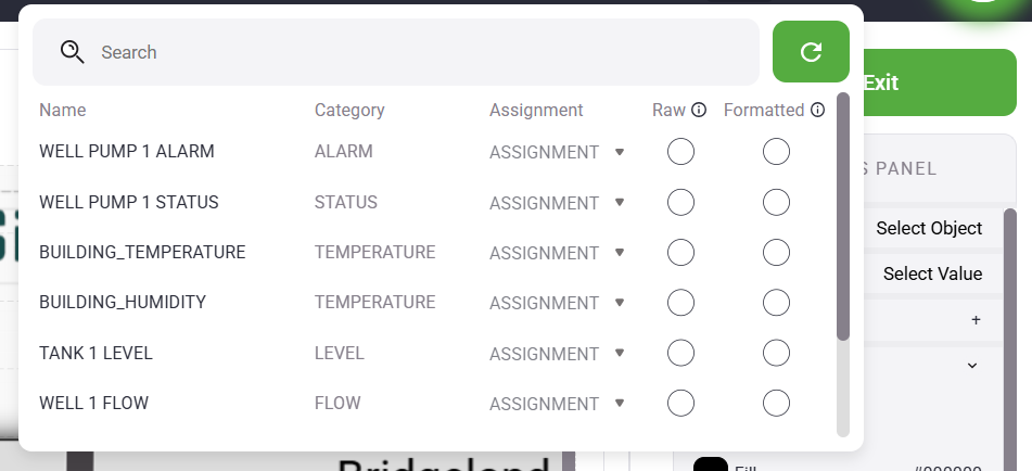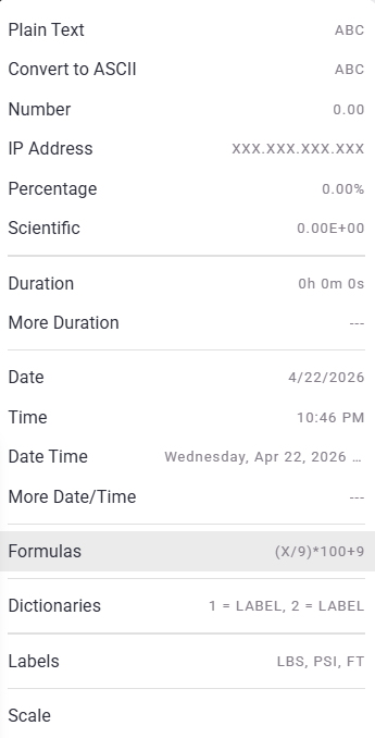 Set Value - Opens a text or dictionary pop-up for manual value entry (e.g. change set point)