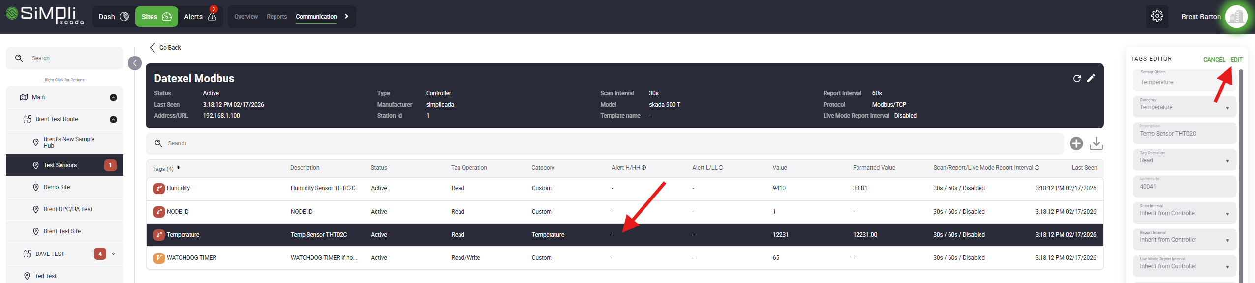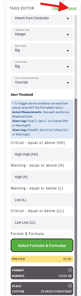 Select the Tag that you wish to apply the Scaled Formatted Value to and click the green "Edit" icon in the top-right corner of the "Tags Editor"