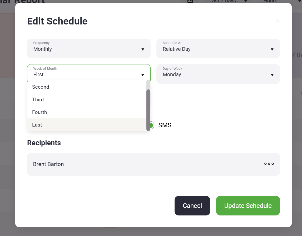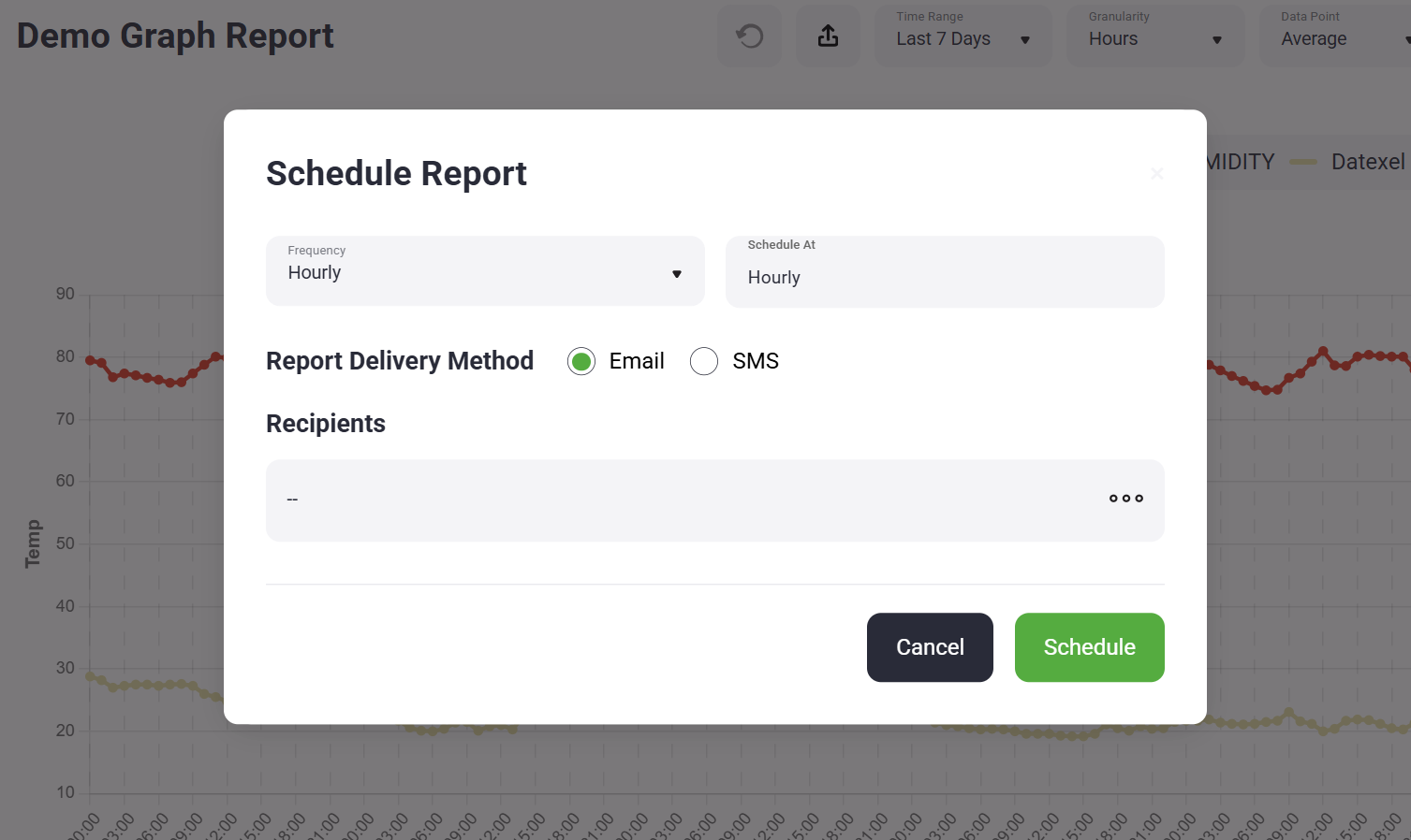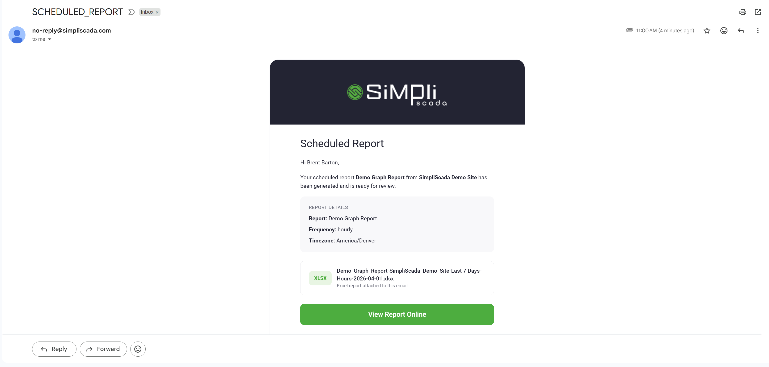 SimpliScada includes a Report Scheduler that allows users to automatically receive reports on a repeating schedule. Scheduled reports can be delivered via email or SMS text message.