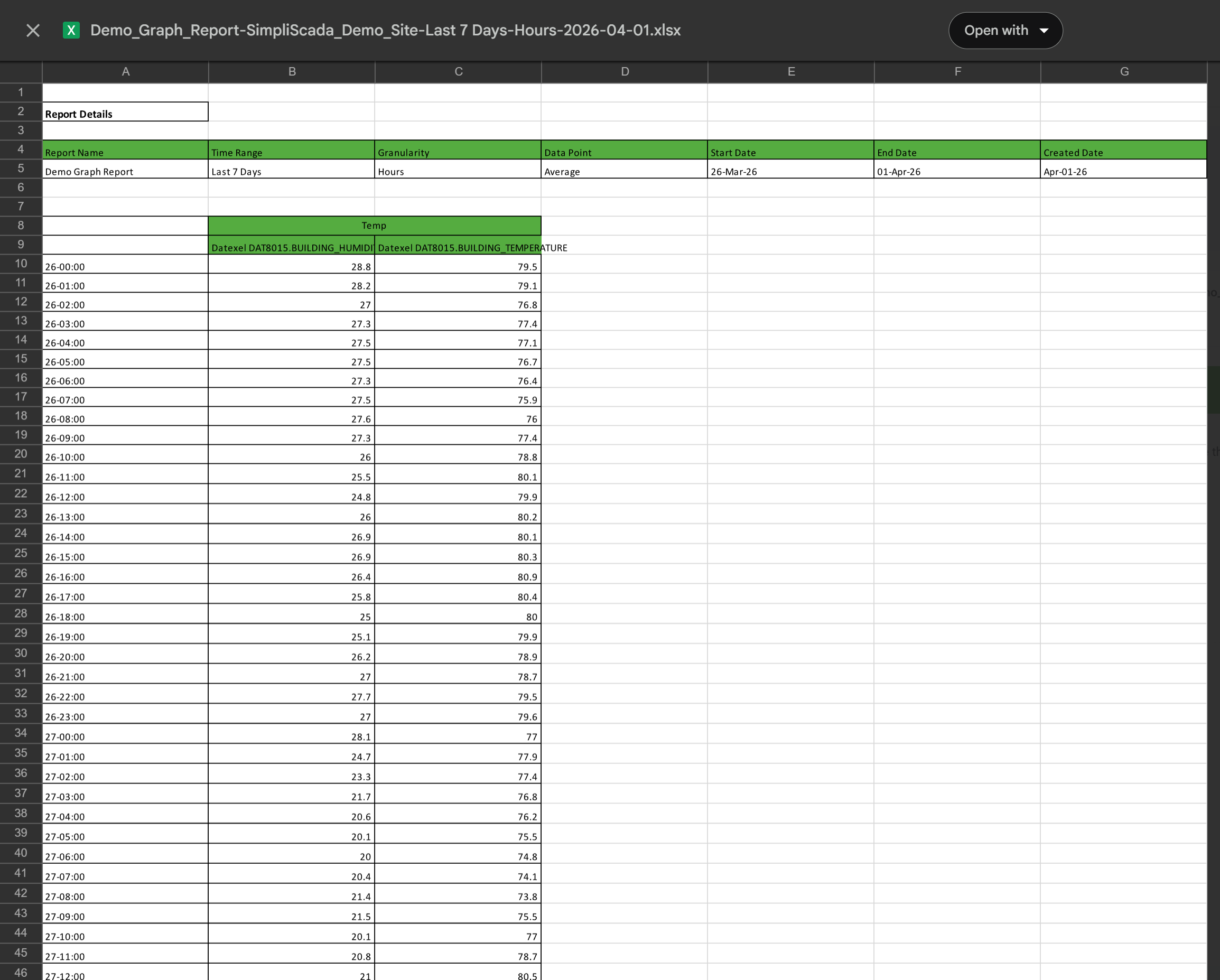 An .xlsx spreadsheet attachment of the report