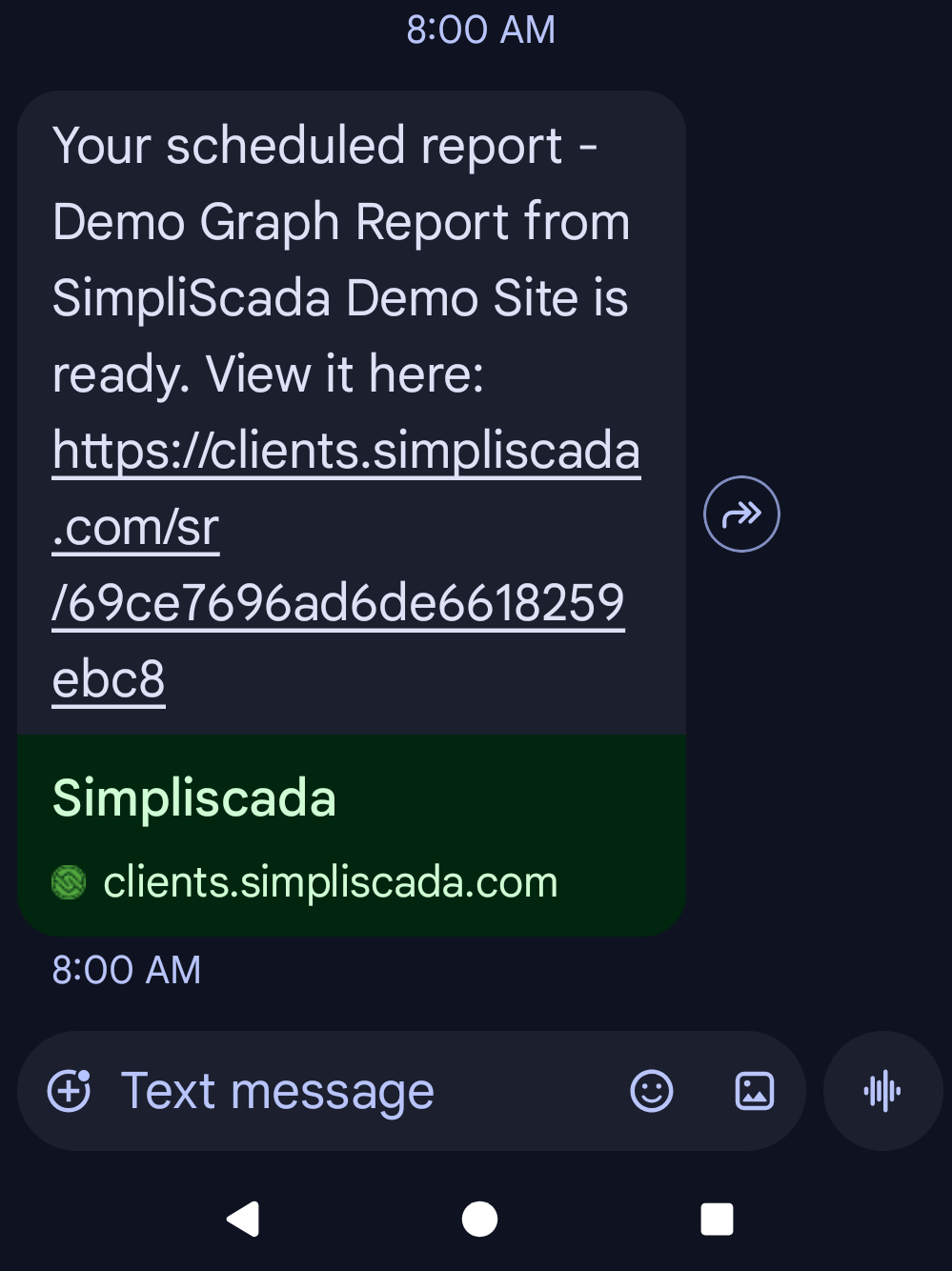 Recipients will receive a text message containing a link to view the report.