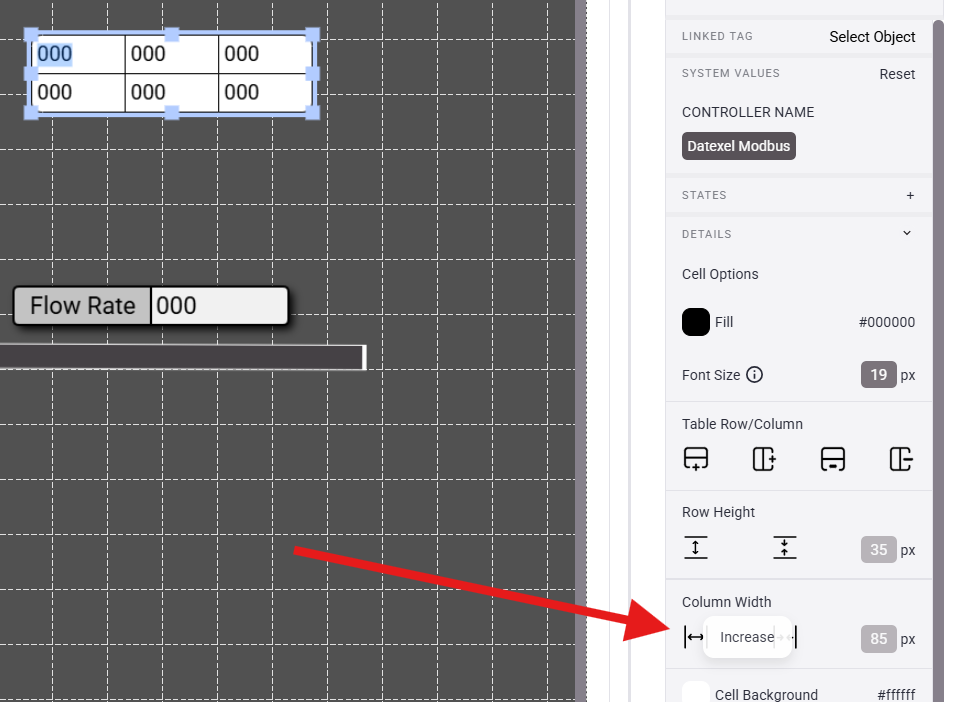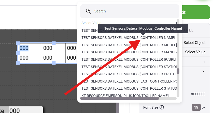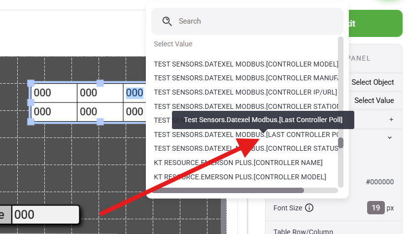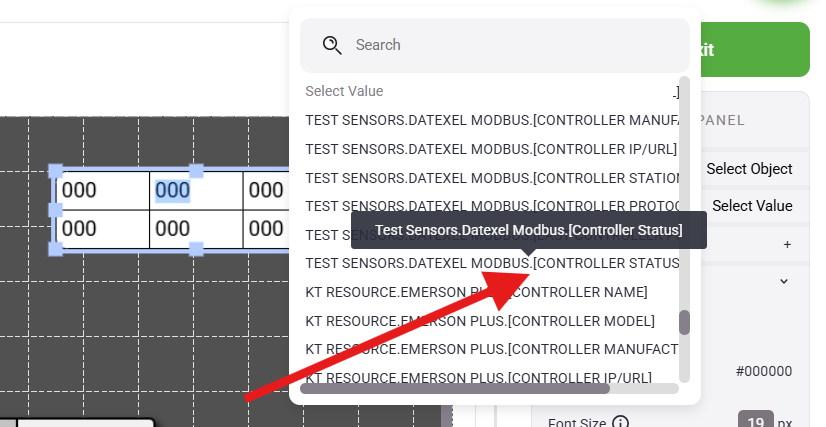 In the second field of the table we want to link the status of the controller. This will be listed as "[Controller Status]"