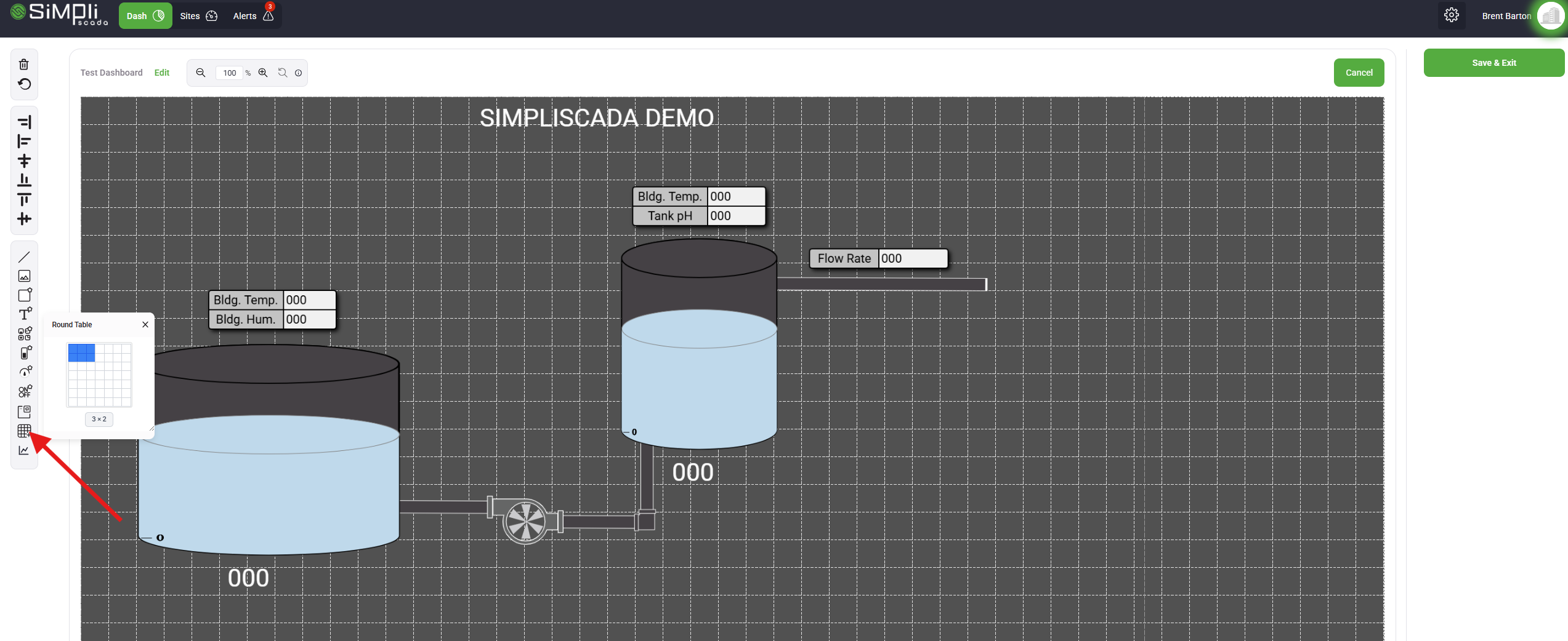 To begin, select a Round Table from the left-hand toolbar in you canvas editor. The table should be 3 columns wide and have the same number of rows as there are controllers in the project.