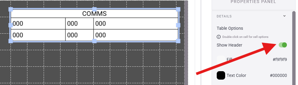 Finally, the overall look and style of the table can be adjusted by selecting the table and using the various table options in the Properties Panel. For an in-depth guide to table customization, see our "Creating a Table" knowledgebase article.